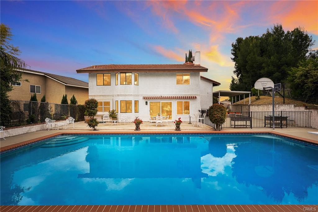 BREATHTAKING VIEWS! This home, located on a cul-de-sac, with 5 bedrooms, 3 baths & a bonus room, has been loved & well cared for by the ORIGINAL OWNER. South-facing double doors open to a living room with high ceilings and a picturesque window filling the room with natural light. Adjacent is the formal dining area, ideal for hosting parties and family gatherings. Updated kitchen with stone countertops, ample cabinetry with hardware, an island offers additional prep space, stainless steel appliances & recessed lights complete this gourmet kitchen. Enjoy amazing views while breakfasting in the eating area adjoining the kitchen. Spacious family room with a cozy brick fireplace, recessed lights & sliding doors leading to scenic views. A convenient bedroom & 3/4 bath ideal for guest or as a home office complete the first level. Walking up the stairs, the skylight fills the stairway & upper level with natural light. Upper level has primary suite, 3 bedrooms, hallway full bath & a bonus room. Primary suite with multiple big windows framing the stunning views & a walk-in closet. Spacious ensuite bathroom features dual vanities, soaking tub & updated walk-in shower with glass enclosure & tile surround. 3 additional bedrooms offer space & comfort, ideal for growing families. A hallway full bath features dual vanities. Large bonus room presents multi-use space perfect for entertainment or relaxation. Outside, the huge yard is a haven for outdoor living, featuring breathtaking views of rolling hills that stretch as far as the eye can see. It is the perfect backdrop for any gathering. A sizable pool for entertaining, beautiful palm trees and mature shrubs line the backyard, a motorized retractable awning provides shades, ensuring comfort for every season. Tiered areas on downhill slopes great for your gardening! An enormous side yard, secured with wrought iron gate provides covered parking for RV or boat, great for outdoor lifestyle. The possibilities are endless with this large lot, potential for building an ADU, make sure to check with City. Additional features include 3-car attached garage directly accessible from home, a wide stamped cement driveway provides extra parking spaces, central air & heat, tile roof, updated plumbing & renowned Walnut School District